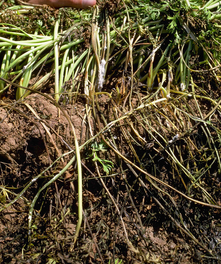 Заражение корневой системы часто приводит к преждевременному увяданию и гибели растения.