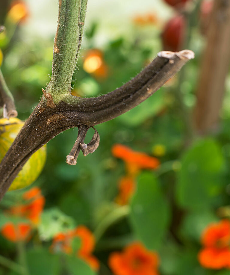 Виды Phytophthora — это разрушительные организмы. Они относятся к оомицетам и поэтому, строго говоря, не являются грибами. Они хорошо развиваются при температуре почвы от 15 до 23 °C и содержании воды выше оптимального для роста культуры.