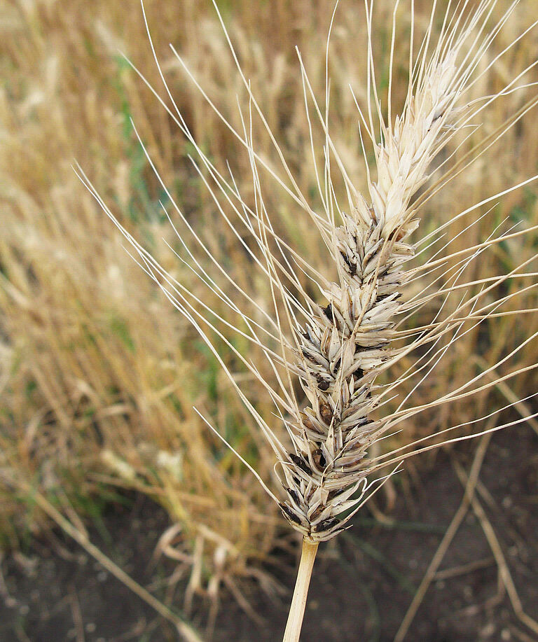 Телиоспоры прорастают как реакция на влагу и образуют базидиоспоры, также называемые первичным споридием. Различают два типа соединения. Нитевидные базидиоспоры сливаются в середине с базидиоспорой другого типа соединения, образуя H-образные структуры. Они могут прорастать непосредственно или образовать вторичные споридии. Эти споридии заражают сеянцы пшеницы еще до прорастания, и грибок прорастает внутри растений до точки ростка. Грибок растет между клетками растений и, в конечном итоге, прорастает внутрь зерен. Когда это происходит, мицелий грибка превращается в телиоспоры, и все зерно становится головней, полной телиоспор. Эти головни разбиваются во время уборки урожая, позволяя телиоспорам падать на землю. Кроме того, телиоспоры загрязняют здоровые зерна, которые, в свою очередь, становятся источником заражения в следующем сезоне.