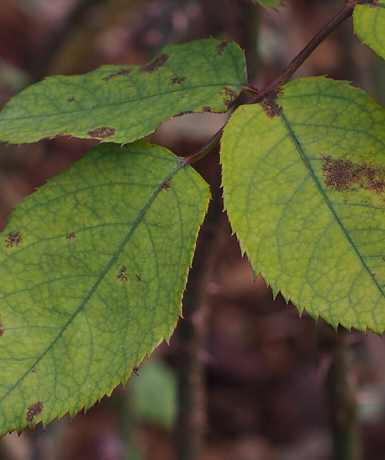 Патогены ложной мучнистой росы заражают, главным образом, листья, но иногда им бывают подвержены также стебли и плоды. Они вызывают образование поврежденных участков на верхней поверхности листа, окаймленных жилками, которые сначала желтеют, а затем становятся коричневыми. На нижней стороне листа появляется пушок, сначала белый, а затем серо-коричневый. Это спорообразование патогенов, выступающих из устьиц. На листьях салата-латука сначала происходит заражение ножки, что приводит к падению растения. На капусте в случае серьезного распространения болезни происходит также заражение стебля. На ежевике могут появляться красные полосы на стеблях и черешках из-за систематического заражения. Заражение плодов на ранних стадиях может вызвать их раннее покраснение, после чего плоды погибают и сморщиваются. При заражении на более поздних стадиях ягоды раскалываются и одна или обе части могут сморщиться.