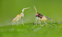 Взрослые самки паразитарных ос паразитируют на личинках белокрылки с второй по четвертую возрастную стадию. Также происходит кормление на растении-хозяине.