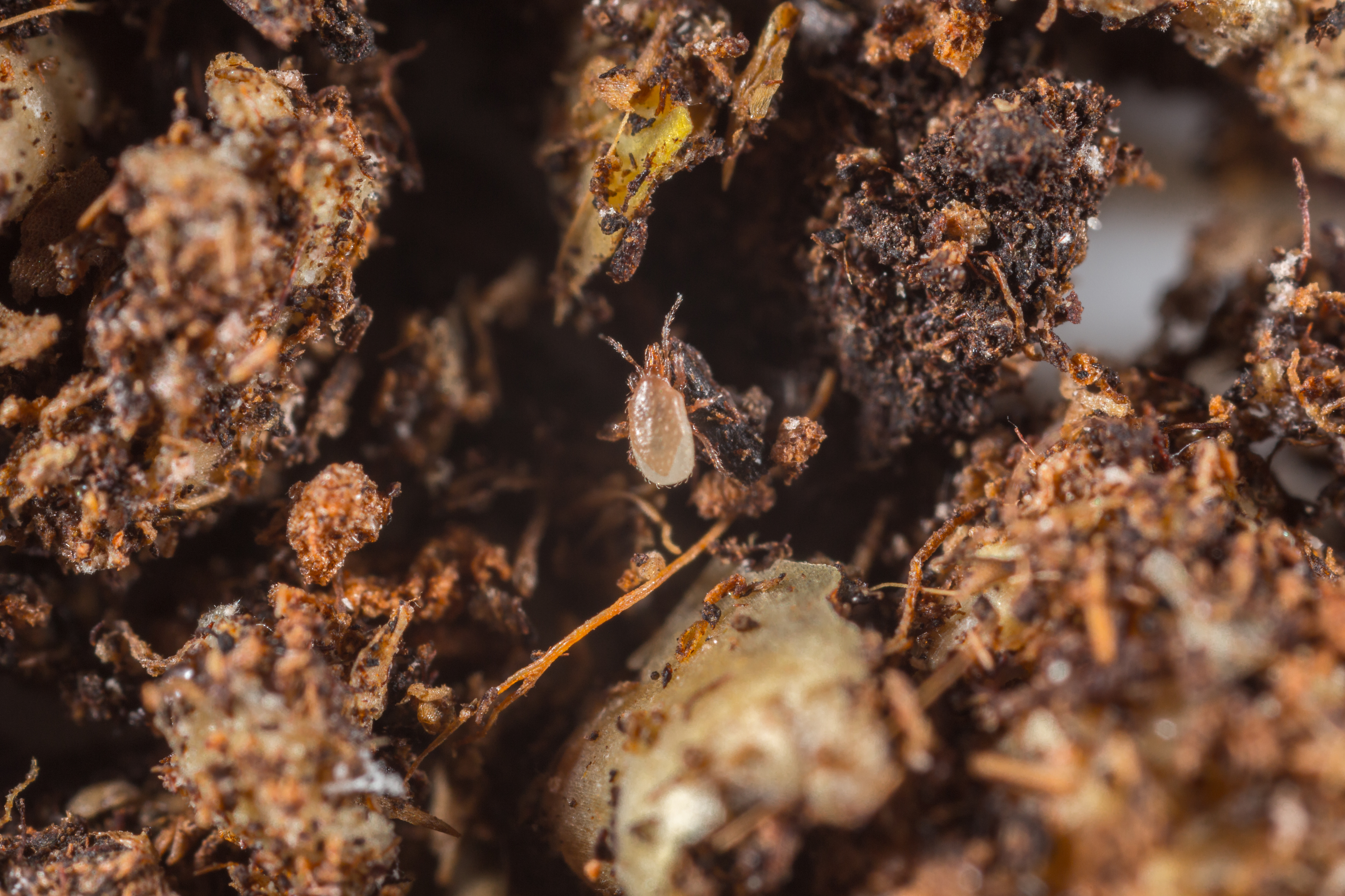 Яйца, личинки и куколки сциарид; куколки трипса.