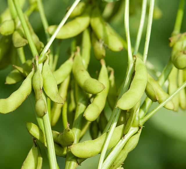 Соя культурная (Glycine max) (Северная Америка), или соевые бобы, относится к так называемым бобовым и происходит из Восточной Азии. Она широко распространена из-за своих съедобных бобов.