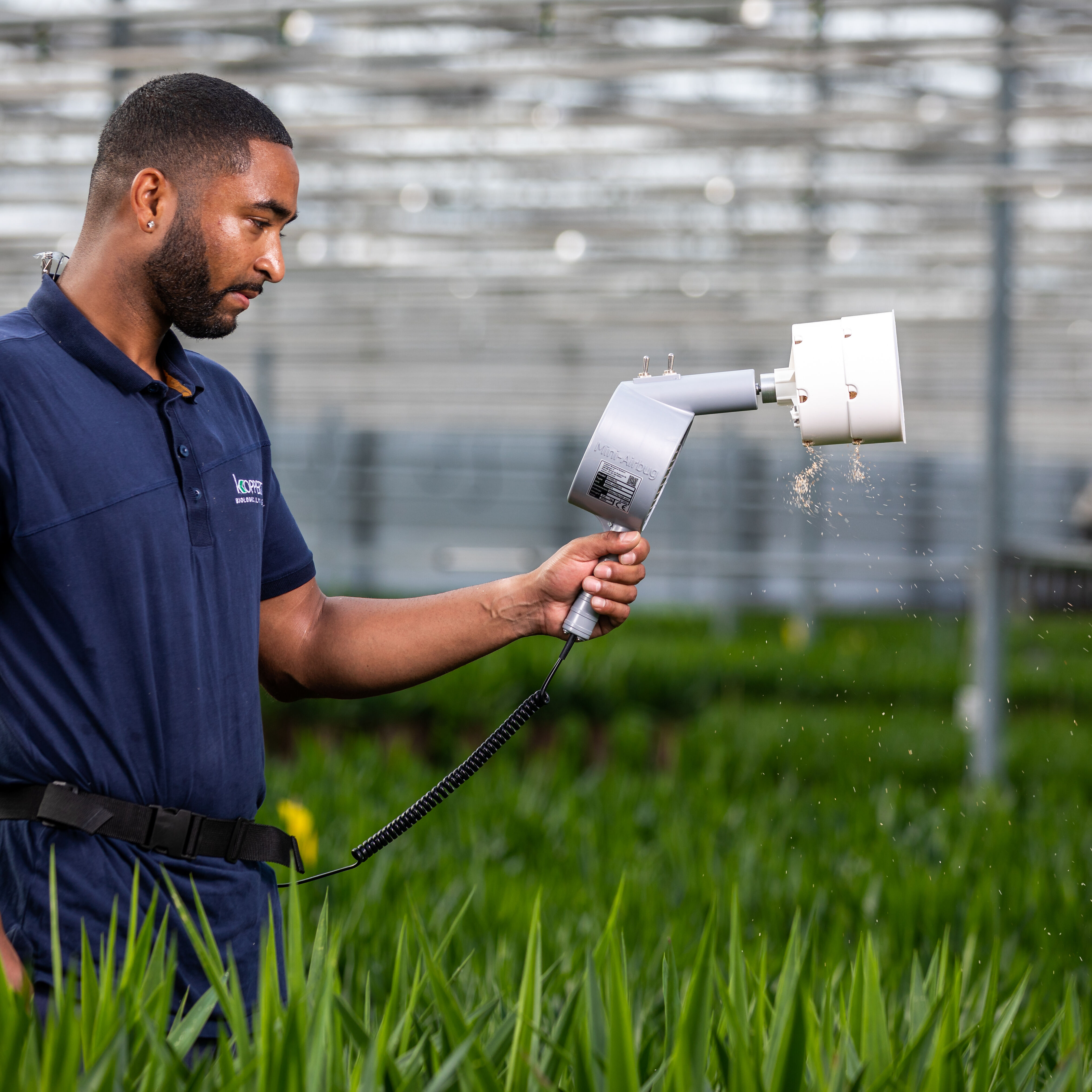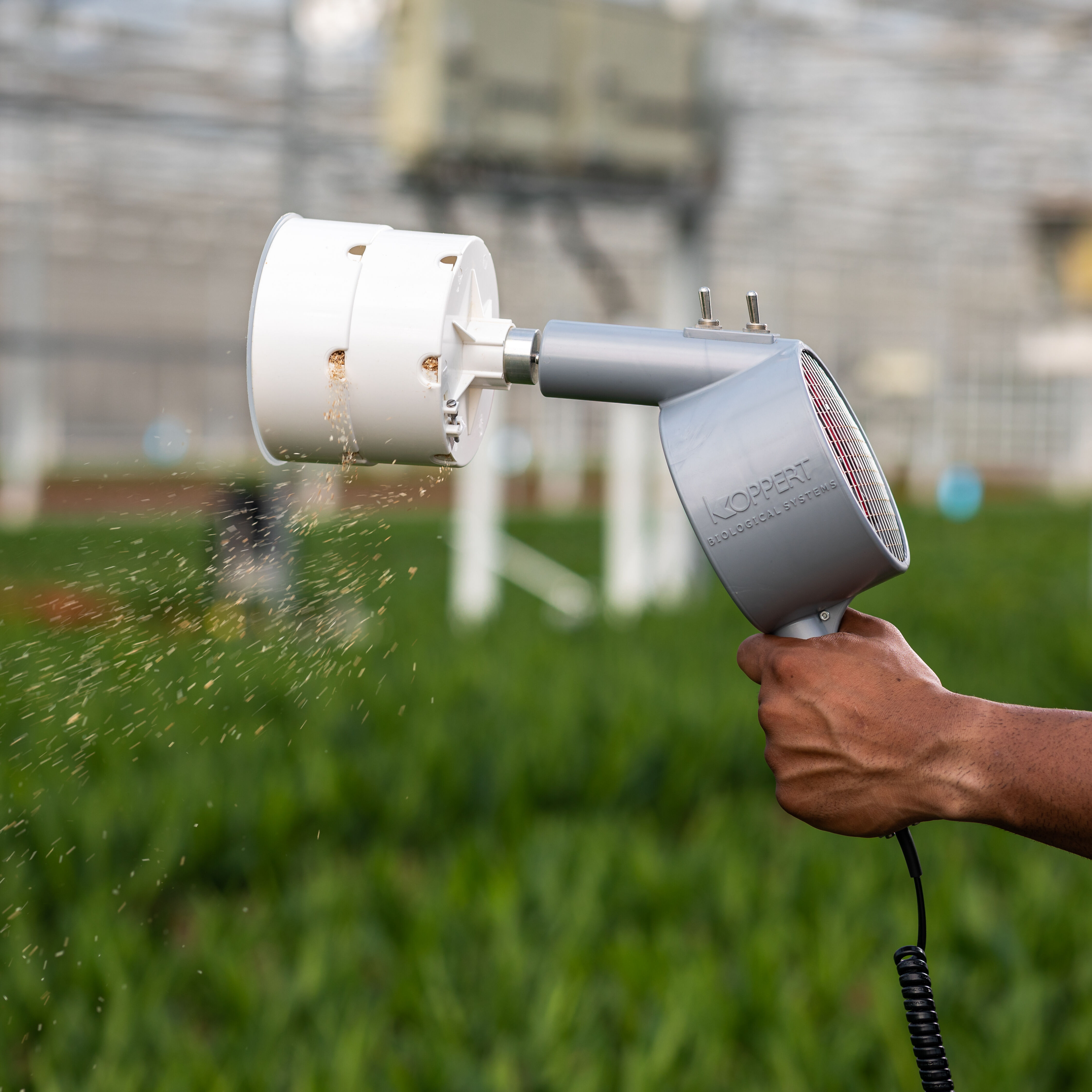 Используйте Natutec Mini-Airbug для распределения энтомофагов по растениям. Mini-Airbug можно использовать для распределения по всему полю, в отдельных очагах поражения, а также для внесения Artefeed и Entofood.