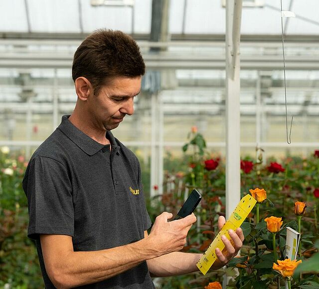Цветовод использует приложение "Скаут урожая" уже значительное время и получает положительные результаты. Скаутинг стал более эффективным, простым и понятным по сравнению с предыдущими методами. Удобство пользования приложением несомненно. Каждая липкая ловушка может быть установлена индивидуально для каждого пути. У вас есть возможность вручную подсчитать и ввести количество трипсов или белокрылок или выбрать автоматический подсчет путем сканирования липкой ловушки", - говорит Вольгеринг.