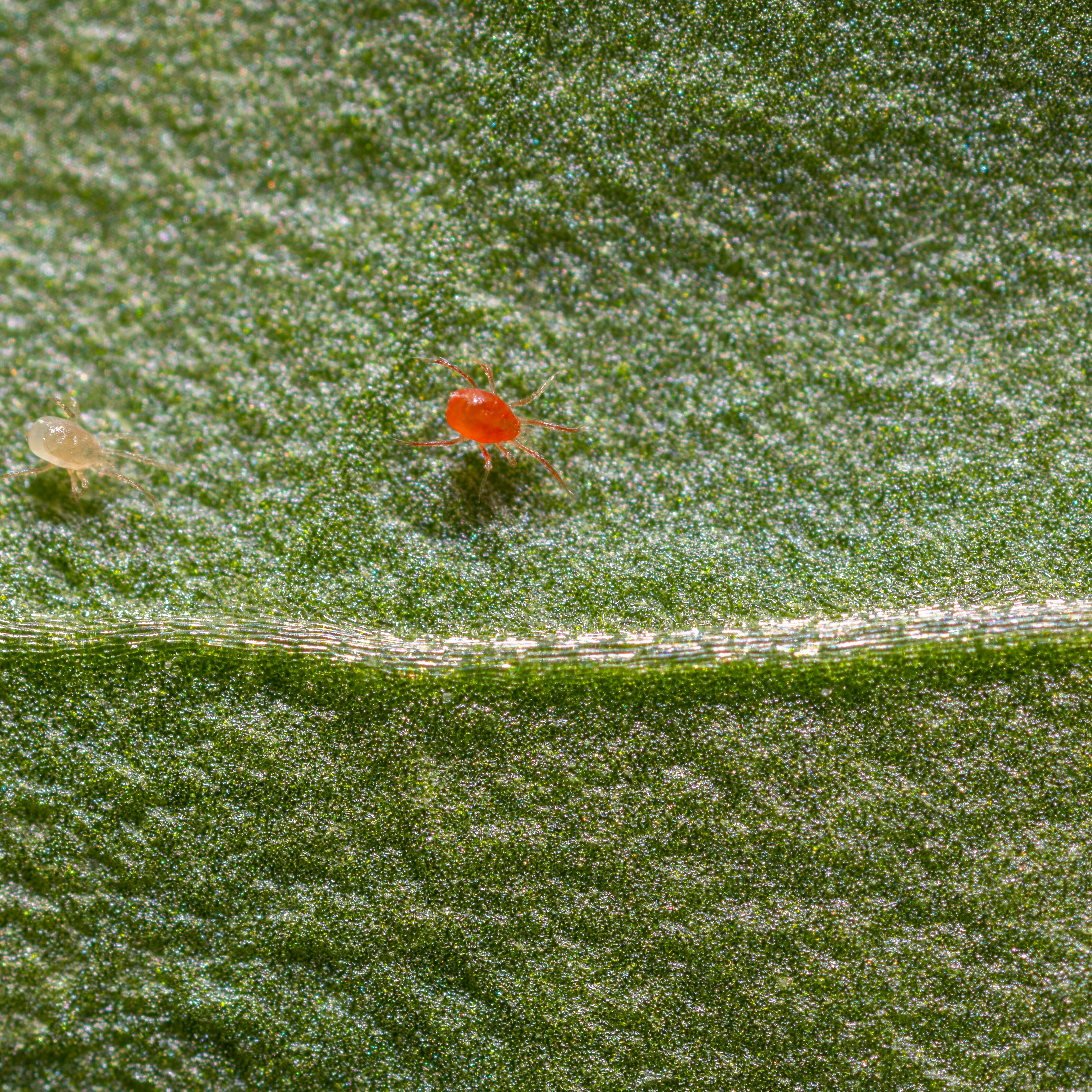 • После пожирания паутинных клещей цвет хищных клещей меняется с белого на красный