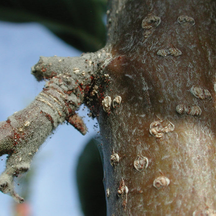 Как следует из названия, клещ красный фруктовый (Panonychus ulmi), является главным образом вредителем плодовых деревьев (яблоня, груша, слива и вишня). Тем не менее, он может нападать повреждать большое количество других деревьев и иногда поражает розы и другие декоративные растения из семейства розоцветных, выращиваемые в теплицах. Он родом из Европы (как следует из названия, используемого в Северной Америке — «европейский красный клещ»), но теперь распространен во всем мире в регионах с влажным климатом, где выращивают яблони.
