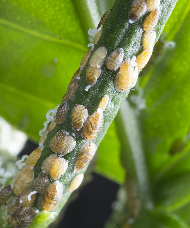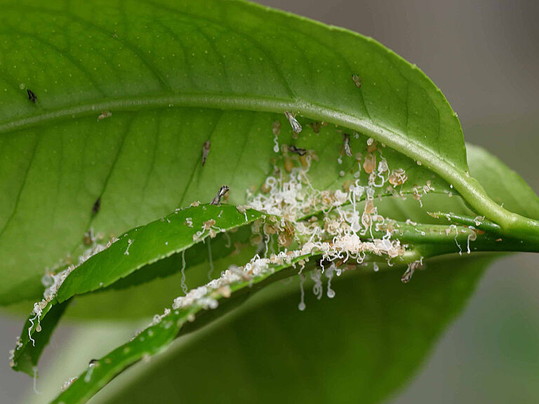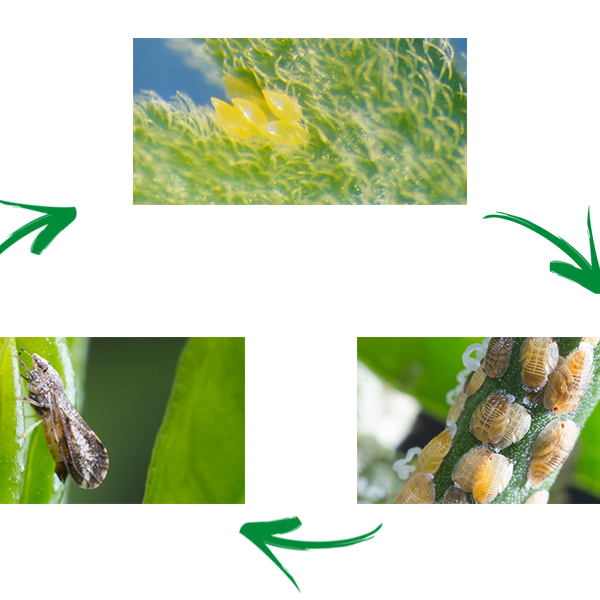 Листоблошка — это сосущее насекомое, которое питается, вводя части ротового аппарата в растительную ткань. Взрослые особи питаются молодыми стеблями и листьями на всех стадиях развития. Нимфы питаются молодыми листьями и стеблями, постоянно выделяя большие количества медвяной пади и нитевидного воскообразного вещества, так что на медвяной пади развивается черная сажевая плесень. Процесс их питания вызывает повреждения цитрусовых,поражая новые побеги или заставляя листья скручиваться или зазубриваться при созревании. Наибольший ущерб наносится, если насекомое является переносчиком бактерии Candidatus Liberibacter asiaticus, которая вызывает смертельную болезнь цитрусовых под названием «позеленение цитрусовых» или «Желтый дракон» (HLB). Бактерия попадает в нимф и взрослых особей листоблошки во время питания зараженными бактерией растениями. Заболевание передается на здоровое растение, когда взрослые особи перелетают на него и вводят бактерии во время кормления. Болезнь может убить цитрусовое дерево всего за пять лет; средства лечения отсутствуют.