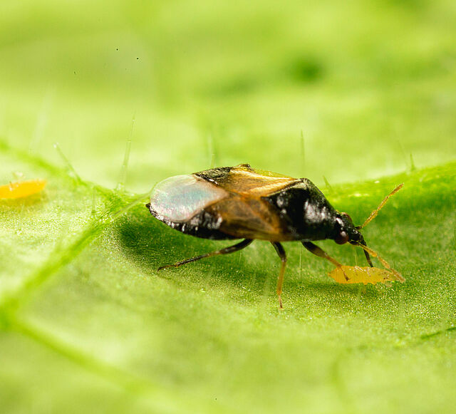 Orius insidiosus - небольшой, но очень эффективный хищный жук для биологического контроля трипсов. Это полезное насекомое широко используется в стратегиях интегрированной борьбы с вредителями (IPM) в различных сельских хозяйствах и садоводстве по всему миру. Как взрослые особи, так и нимфы являются прожорливыми хищниками, способными пронзать и питаться мягкими телами своих жертв.