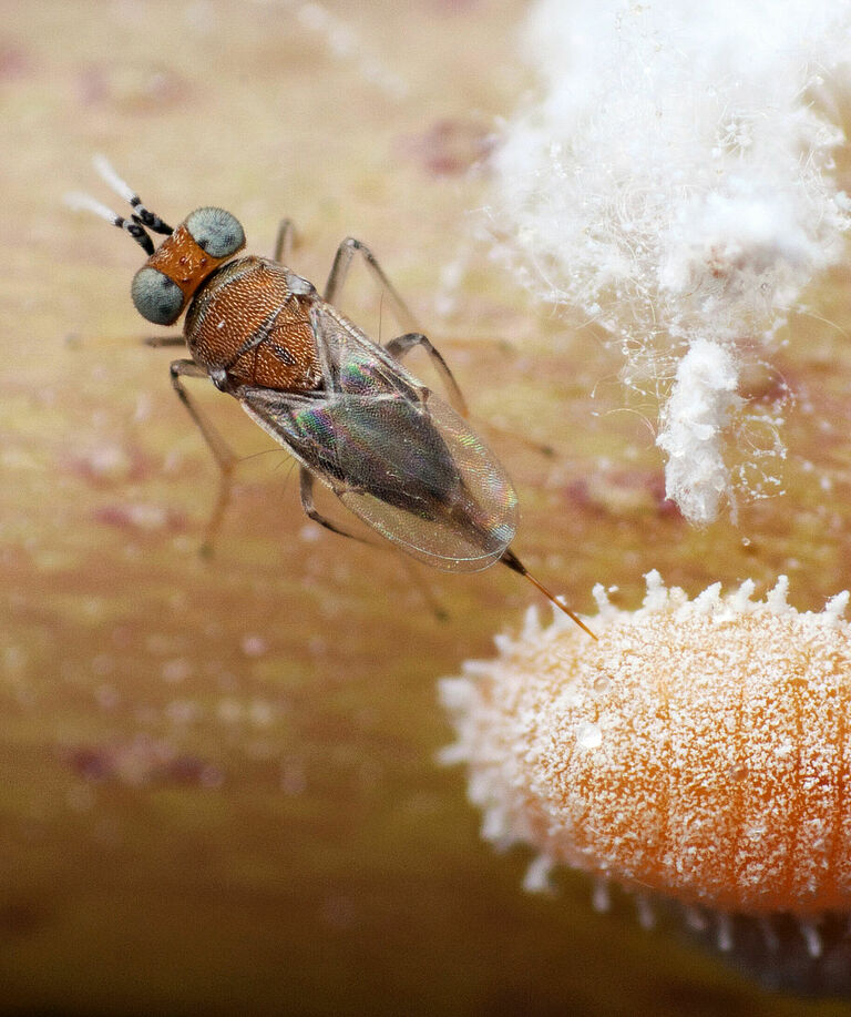 Мучнистые клопы и чешуекрылые - насекомые, питающиеся соком, которые могут ослаблять и повреждать растения. Anagyrus vladimiri (Citripar) - паразитический вид ос, питающийся мучнистыми клопами.